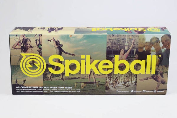 De standaard Spikeball-set wordt geleverd met alles wat je nodig hebt om te spelen: 1 set met een net, een lichtgewicht draagtas en een spelregelboek.